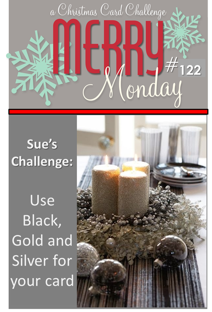 DeleteLove the beautifully embossed background and the gold & silver snowflakes! Just beautiful, Claire!! Thanks for playing along with us this week over at Merry Monday! :)