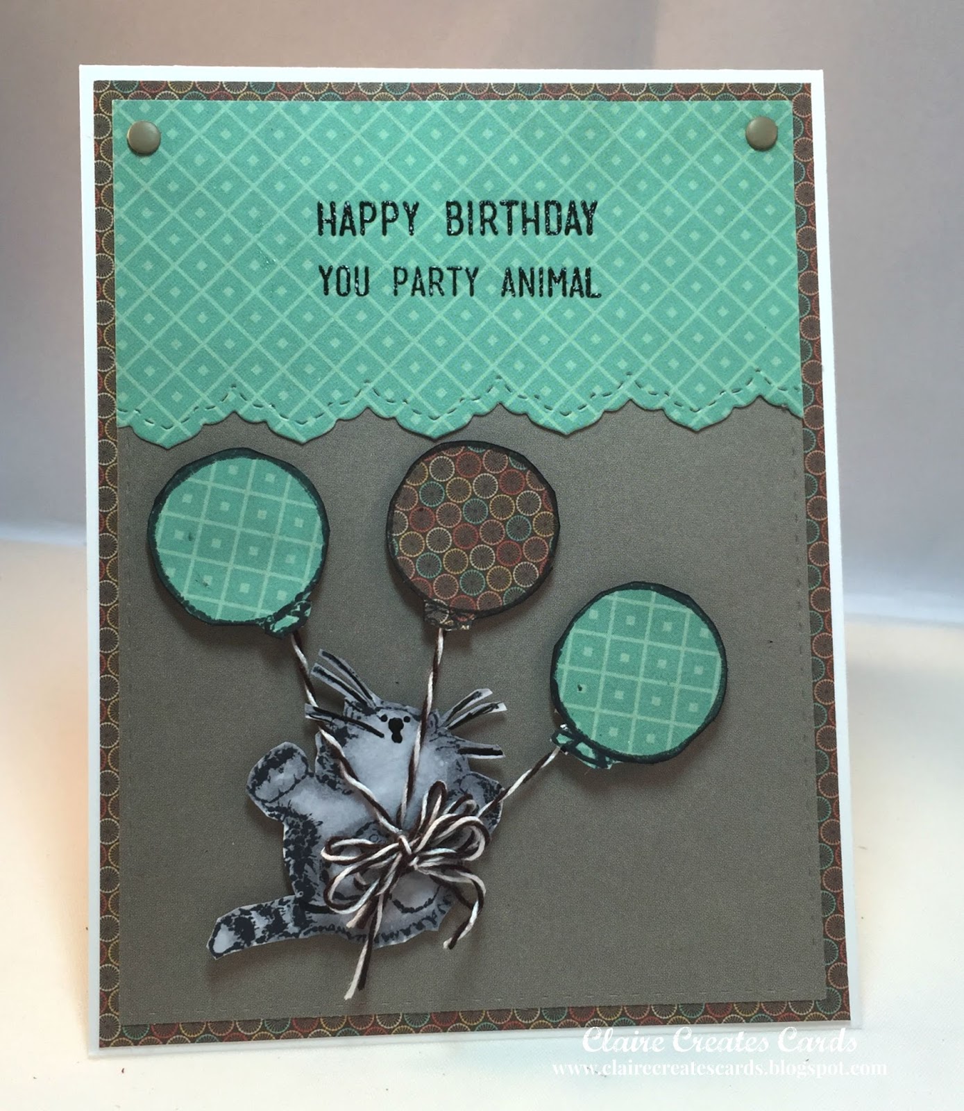 The sentiment is from a retired Stampin' Up! set called Loving Thoughts. It was stamped on Garden Green paper with black Versa Fine and heat embossed with clear embossing powder. I flagged the ends for a banner and attached it to the bottom of the card.