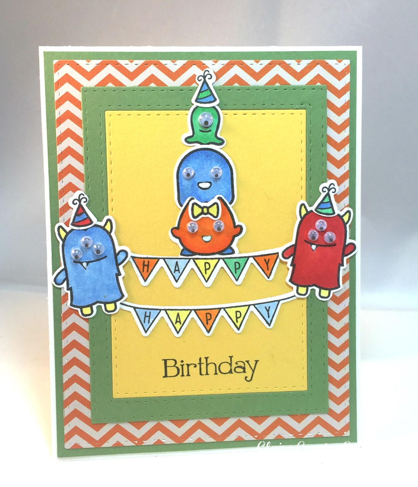 The base card is Night of Navy card stock. The next layer is Garden Green. I used the Murphy's Square paper pack that I purchased at Hobby Lobby for all the patterned papers. It has such great patterns for guy cards. The sentiment was stamped on Very Vanilla and heat embossed with black Versa Fine ink. I stamped the ball and the golfer on Neenah Solar White paper and colored them with Copic Markers. I cut them using the matching Your Next Stamp--Tee Time Dies. I adhered them with Stampin' Dimensionals and added goggly eyes to the golf ball.