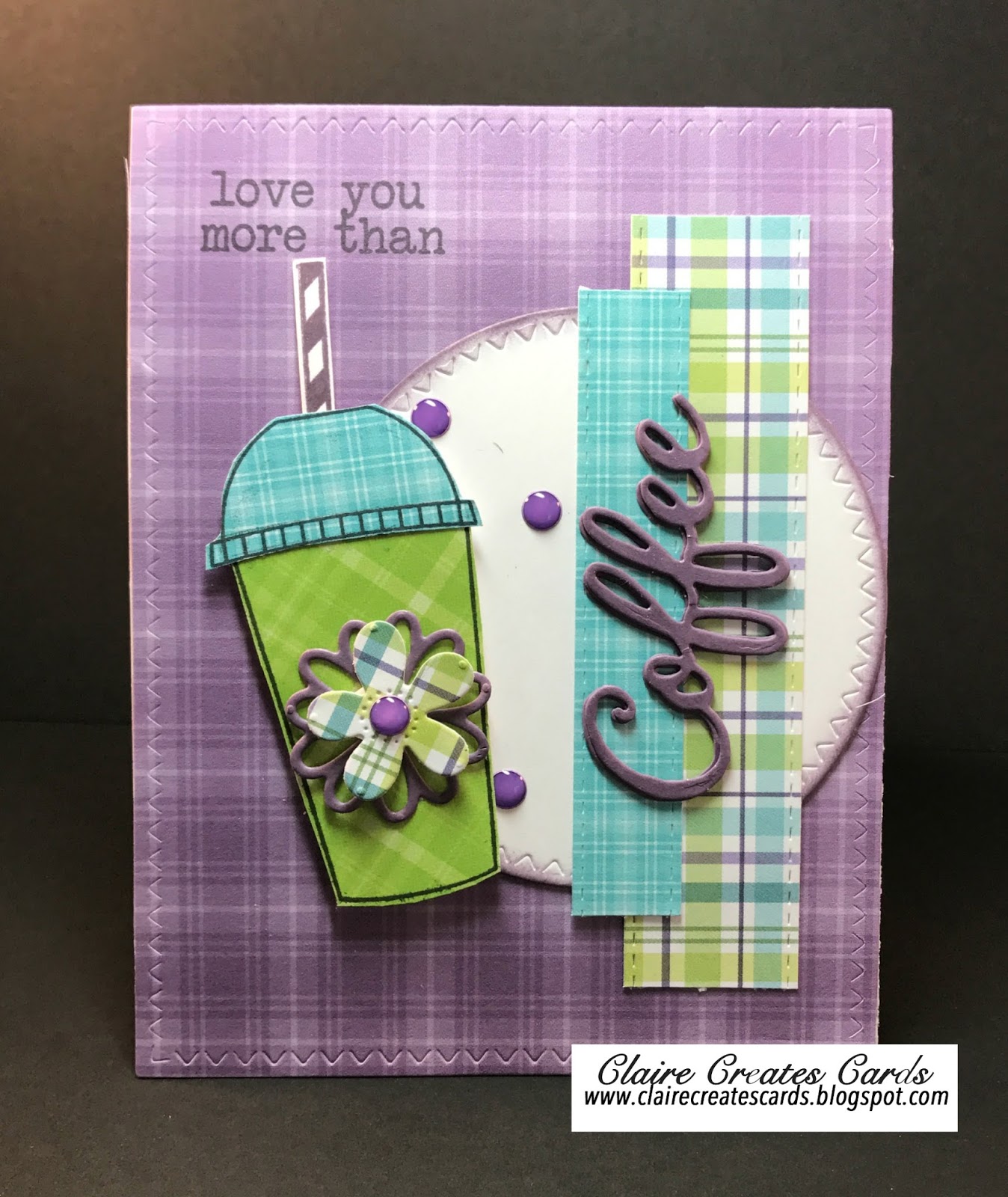 My card is created on a white card base. I used the MFT Blueprints 20 for cutting the beautiful purple plaid paper from Lawn Fawn's Perfectly Plaid Rainbow paper pack. The Stamps of Life Succulents2 stamp set and dies were used on the cactus and pot. I have had this stamp set laying on my table for months. I love succulents and they have become very popular in decorating. I do not have a green thumb and people laugh when I say, "I can't keep a cactus alive"!, but it is true. I cut a Mossy Meadows circle from the Zig Zag Stitched circle die from SugarPea Designs. The Wild Wasabi rectangle was embossed with an embossing folder that I thought looked southwestern. The cactus is stamped and colored with Copic Markers. A few purple enamel dots were added for fun.