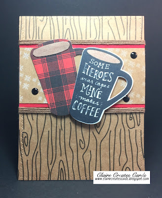 My card is created on a white card base. I used a variety of papers to create this card. I wanted to make this card for my Sweetie because he brings me coffee in bed every morning! The stamp set is from Reverse Confetti--Just Brew It. I used the matching die to cut out the mugs. Twine and enamel dots were added and a little Wink of Stella to make the coffee shine.